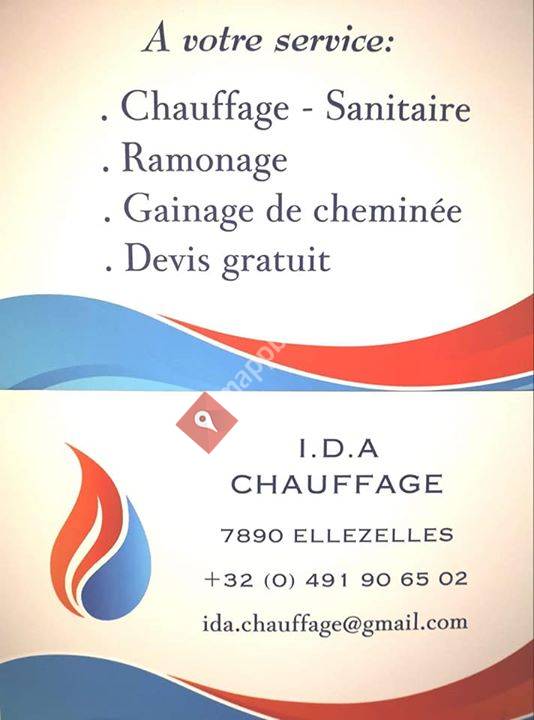 "IDA Chauffage, c'est une expérience partagée de plus de 20 années d’expérience professionnelle dans le chauffage et le sanitaire. Une collaboration de spécialistes pour vous conseiller dans vos projets de remplacement de chaudière, trouver les solutions afin de réduire vos consommations etvous offrir aujourd’hui un service de qualité pour l’installation, l’entretien, le dépannage de votre système de chauffage.Mais pas seulement.• Ramonage et gainage de cheminées• adoucisseurs d’eau• systèmes de récupération de l'eau de pluie• rénovation/conception de salle de bain• poêles et chaudières à pellets• VMC• Pompes à chaleuret le SAV qui va bien.Installation Devillers Alain, 3 lettres pour votre confort!"Voeg deze kaart toe aan uw website;
