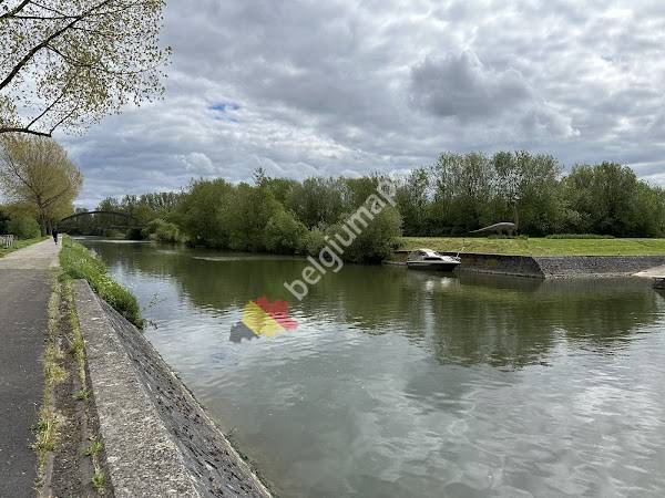 Naast de Sambre en de brug staat een interessant dinosaurusbeeld. Leuk en schattig om te zien. Je kunt er zelfs picknicken of vissen.
