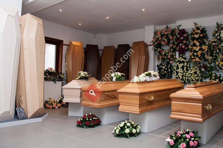 Organisation de funérailles, salle de réception, articles funéraires, fleurs naturelles et artificielles, monuments funéraires, bijoux cinéraires